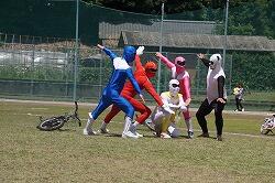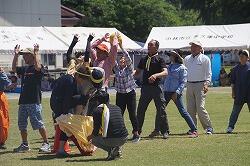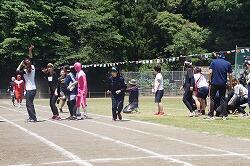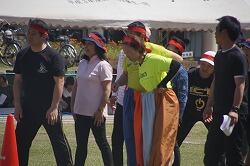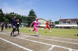 PTA地区対抗リレーが始まると思いきや、毎年恒例の宮崎牛によるパフォーマンスです。今年は、ゴレンジャーも参加して、地区対抗リレーを盛り上げていただきました。地区対抗リレーは、永久津小中教職員チームの校長先生がアンカーとして、見事テープを切り、1位となりましたが、オープン参加のため、A地区ブロックの優勝でした。ありがとうございました。