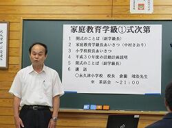 5月30日(水)19時30分~21時00分まで永久津中学校会議室にて、第1回家庭教育学級「ひまわり」「みどり」の開級式がありました。19名の参加でした。家庭教育学級長の挨拶に始まり、今年度の活動計画の説明がありました。