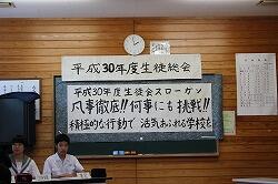 6月1日(金)13:55~15:45平成30年度 永久津中学校生徒総会が実施されました。生徒会スローガン「凡事徹底!!何事にも挑戦!!~積極的な行動で 活気あふれる学校を~のもとに、全校生徒一丸となって真剣な話し合いが行われました。平成29年度活動報告、平成30年度活動方針・各専門委員会の活動計画・全体討議「生徒一人一人が積極性をもち、当たり前のことを当たり前にするにはどうすればよいだろうか?」・学級要望事項などでした。特にボランティア活動や授業中の発表について、さまざまな意見が出て、有意義な生徒総会でした。この1年間、それぞれの係で責任をもって取り組んで、よりよい永久津中学校を築き上げることを期待しています。