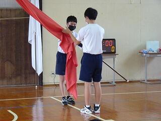 4月13日(水)、運動会の結団式を行いました。実行委員会がまずスローガンを発表して、A団、B団に分かれて大縄跳びで跳んだ数を競いました。勝った方が先にひも(箱の中の赤、白のはちまきに結んだひも)を選び一斉に引き、赤、白が決定しました。5月21日(土)の小中合同運動会までに計画的に準備を進めて行きます。