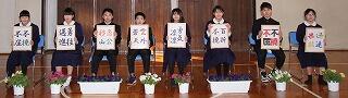 そのような状況の中、第2学年生徒は自分の決意を四字熟語で示し、堂々とその思いを発表してくれました。