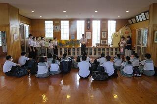 修学旅行1日目がスタートしました。出発式後、保護者・職員・1年生に見送られて、元気に出発しました。