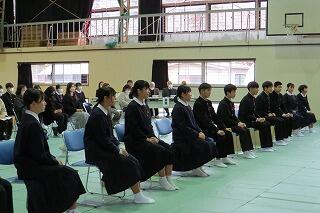 昨年は、生徒・職員のみでしたが、今回は、式典の時間を短縮した上で、保護者・学校運営協議委員の方々にも出席いただき、2月10日(金)に実施しました。第2学年生徒は、色紙に書いた自分の決意を堂々と発表してくれました。