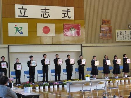 立志式では、押領司誠校長先生の挨拶の後、中屋敷史生教育長から祝辞をいただきました。そして、2年生が自分の決意を立派に発表してくれました。