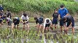 6月18日(金)、永久津小学校の5年生10名と本校生徒32名で田植体験学習を行いました。営農組合とJAこばやしの皆様から植え方等のご指導を頂きながら楽しく活動することができました。中学生の中には田植え経験のある生徒もいて、小学生を優しくサポートする場面が多く見られました。10月の稲刈りや収穫が楽しみです。