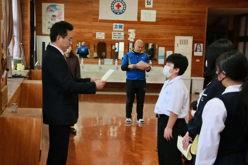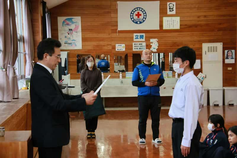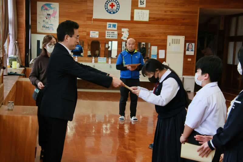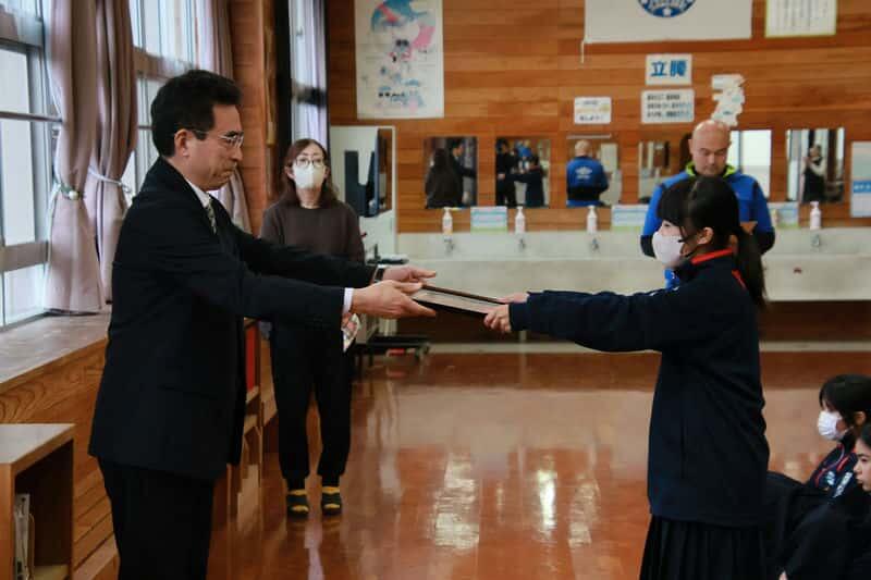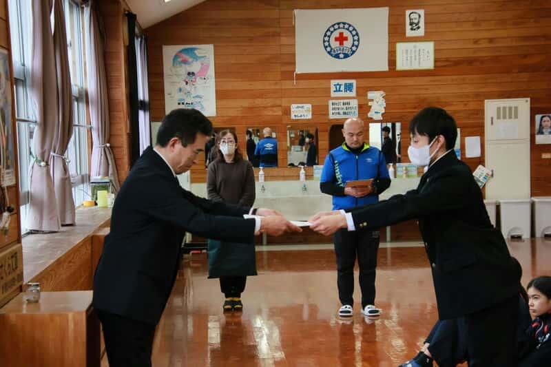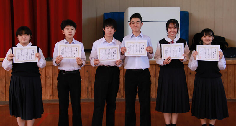 1年間生徒会役員として学校のために尽力してくれた6名の皆さんに、学校長から感謝状が渡されました。