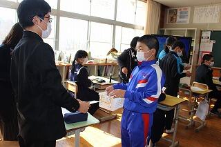 1月24日(木)に、都城きりしま支援学校小林校中学部の生徒たちが、自分たちがつくった受検合格祈願のお守りを3年生にプレゼントしてくれました。心のこもったありがたいプレゼントですね。3年生は1月29日(火)に私立高校入試が行われますが、お守りを持ってベストを尽くしてください。