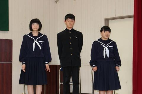 2月1日(金)に生徒集会が行われました。生徒集会では、各専門委員会の先月の取組の反省と今月の取組についての説明、生徒会からの話、表彰が行われました。表彰では、朝のボランティアの取組がよいグループの表彰や清掃態度がよい生徒の表彰、人権標語コンクールの優秀作品に選ばれた生徒の表彰、年賀はがきデザインコンテストの表彰が行われました。