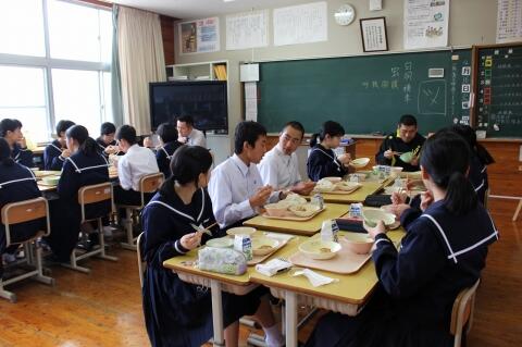 5月23日(木)、本校3年生と併設の支援学校中学部との交流給食がありました。両校は定期的に交流しており大変楽しい雰囲気で給食ができていました。1・2年生も行っていく予定です。