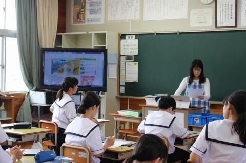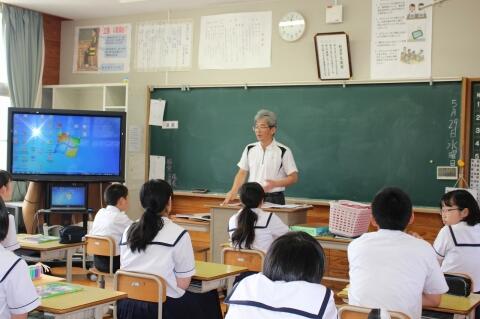 5月15日(水)4校時は、全学年道徳の日です。今日は、3年生道徳の授業を紹介します。本年度から道徳科になり、道徳の授業も学級担任だけでなく副担任の先生も授業しています。今日は、副担任の先生の授業です。題材は、「風に立つライオン」。さだまさしさんの歌で有名ですが実話なんです。アフリカに行って難病で苦しむ人たちを助けたいと夢を抱く日本の青年医師。彼には、恋人がいました。彼は、夢を実現するためにアフリカへと行きます。そして、アフリカで3年の月日が流れた時に、日本にいる彼女から手紙が来たのです。夢と恋人、そう、どちらを選んでも答えはありません。そのねらいにせまるために、各場面でICT機器も使われ感動的な授業となりました。
