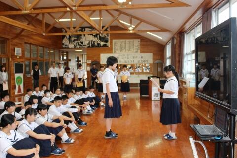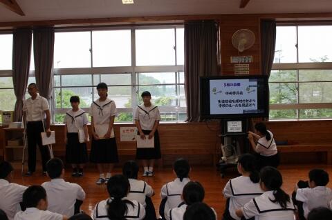 6月4日(火)、生徒集会が行われました。6月の各委員会の取組や5月に行われたあいさつ運動の表彰がありました。