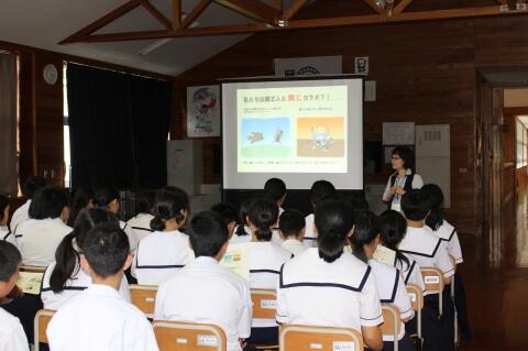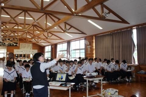 5月9日(木)中支合同避難訓練が行われました。大地震を想定した訓練です。どの生徒も真剣な表情で訓練ができました。そして、日本赤十字宮崎支部から講師をお招きして地震や災害時のことについてお話をしていただきました。
