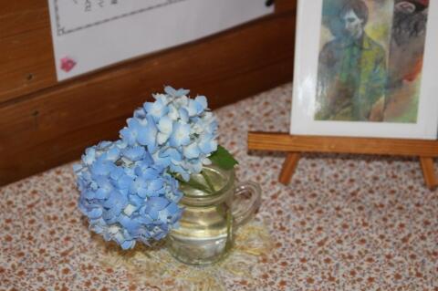 6月4日(火)は図書支援員の方が来られる日です。放課後図書室に行くと、図書支援員の方が、花瓶に挿した「アジサイ」が目を引きました。本校の図書室が充実していることは、以前お伝えしましたが、このような図書支援員のさりげない心配りが本当に温かいです。生徒が自然に図書室に向かうのが分かりますね。