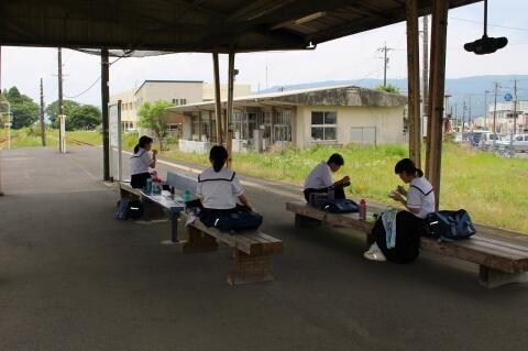 飯野高校へは吉都線を使って、小林駅から飯野駅まで電車で行きました。実際に数学、英語、家庭科で50分授業を体験させていただき、生徒たちも高校生と一緒に貴重な活動をすることができました。