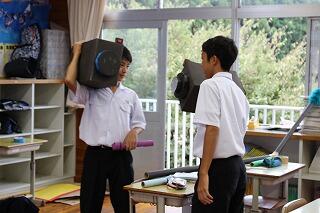 9月10日(月)に、9月23日(日)に行われる陰陽石まつりで輪太鼓を演舞するメンバーを決めました。また、生徒全員で輪太鼓の衣装のサイズを合わせたり、着付けの練習をしました。生徒同士でペアやグループをつくって、協力して着付けの練習をしました。