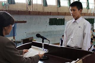 8月30日(木)、全校生徒の前で今年度の選挙管理委員が生徒会役員選挙の告示を行いました。選挙管理委員は毎年3年生から選出されます。選出された選挙管理委員たちが模造紙に生徒会役員選挙の要綱を書いて全校生徒の前で説明しました。生徒会役員に立候補するのは現在の2年生と1年生になります。積極的に多くの生徒たちが立候補してくれると嬉しいですね。