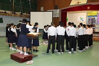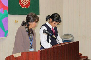12月4日(火)に生徒集会が行われました。新しい生徒会役員になって2度目の生徒集会でした。生徒会役員たちも慣れたのか、スムーズに司会進行をしていました。