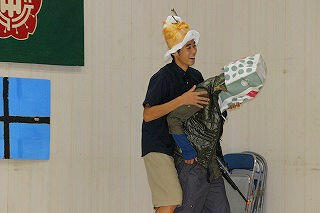 9月23日(日)に陰陽石まつりが行われ、本校の生徒たちが演舞を披露しました。生徒たちや保護者、輪太鼓保存会の方々が、準備のために朝9時に体育館に集まり、衣装の着付けや太鼓などの道具の積み込みを行いました。準備のためにお手伝いいただいた保護者や輪太鼓保存会の方々ご協力ありがとうございました。