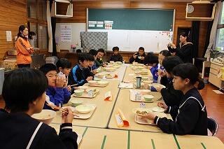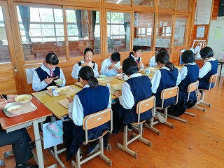 12月13日(木)に、本校の2年生4名と都城きりしま支援学校小林校中学部のみなさんで交流給食を行いました。給食のメニューは麦ご飯とちくわの磯辺揚げ、味噌汁でした。みんなでおいしくいただきました。