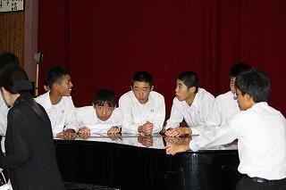 9月25日(火)に生徒集会が行われました。生徒集会では、各委員会の今月の取組に対する反省と来月の目標についての取組の確認を行いました。また、今回の生徒集会では、学習面をよくするにはどうしたらよいかについてグループをつくって話し合いを行い、話し合いの結果を発表し合いました。