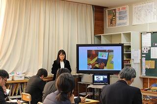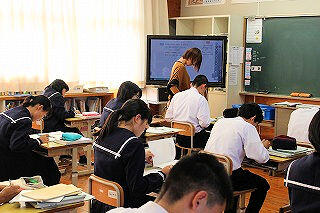 昨年度より本校では、生徒の学習活動においてタブレットPCや授業支援ソフト、ドリルソフト、電子黒板などを効果的に活用するにはどうしたらよいかについて研究してきました。12月12日(水)に、その成果を発表する授業公開が行われました。