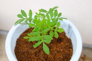 また、花いっぱい運動で植えたマリーゴールドも成長して本葉が出てきました。