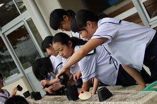 厄払い記念生徒像石碑の塗装