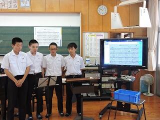 8月28日(火)の授業の様子です。1年生は音楽で、西諸県音楽大会で歌う曲の練習をしています。全体練習のあと、各パートに分かれて練習を行いました。