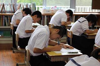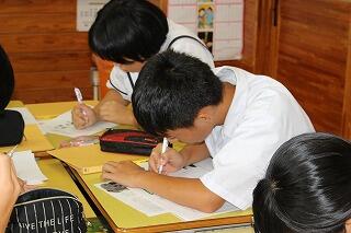 3年生は9月4日(火)と9月5日(水)に地区の実力テストが行われるので、サマースクールでは過去の問題を解いたり、解説を聞いたりして頑張っています。