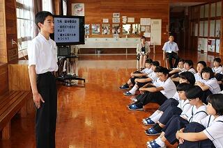 8月20日(月)は登校日でした。全校集会が行われ、漢字検定合格者の表彰や近未来ハイスクールに参加した生徒の紹介などがありました。