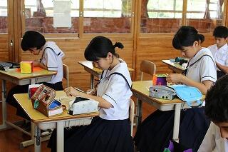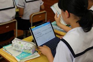5月18日(金)の理科の時間にタブレットPCを使ってタイピングの練習をしました。この日の理科の授業は定期テストの返却でしたので、途中から授業を進めるのではなく、テスト返却後の残った時間を使ってタイピング練習をしました。1年生と3年生で行いましたが、3年生はかなりタイピングができる生徒が何人かいました。