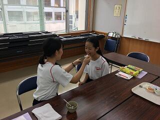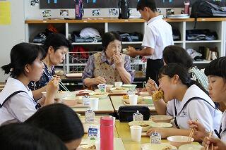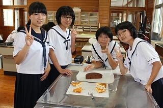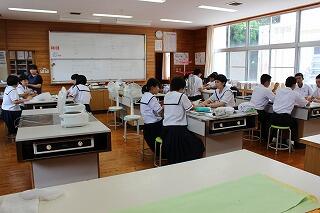 7月18日(水)に、本校に地域の方々が来られて、2年生家庭科の調理実習で郷土料理の作り方を教えてくれました。料理は「がね」と「いりこもち」で生徒たちは地域の方々からいろいろとアドバイスを受けながら楽しそうに料理を作っていました。できあがった「がね」と「いりこもち」は他の学年にも配って、給食のときに食べてもらいました。また、協力していただいた地域の方々も2年生と一緒に給食を食べました。