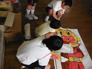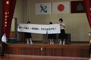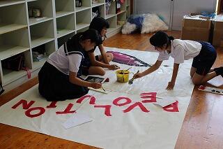 夏休みに入ってからも、運動会応援リーダーの生徒たちは運動会の応援練習や装飾の準備で学校に出てきています。赤団、白団とも工夫を凝らした応援にしようと頑張っています。