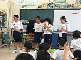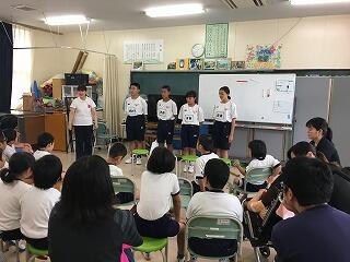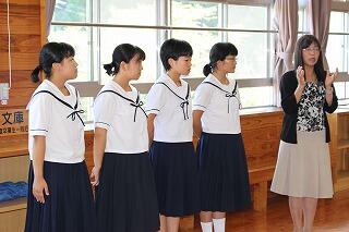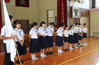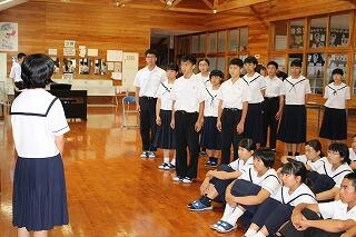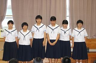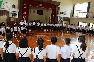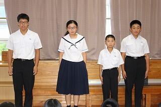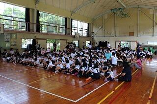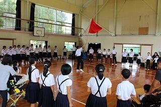 7月20日(金)で1学期前半が修了しました。全校集会では夏休みの過ごし方について、生活面や学習面からの指導がありました。全校集会の最後には、秋の西諸県音楽大会で歌う「ギフト」という曲を全校で合唱しました。