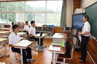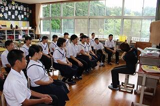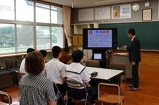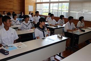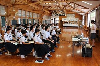 7月26日(木)に小林高校のオープンスクールが行われました。本校からは9名の生徒が参加しました。最初は体育館で全体説明があり、その後、希望教科に分かれて模擬授業が行われました。また、最後に東方中卒業生の先輩との座談会もありました。