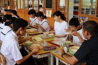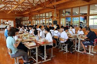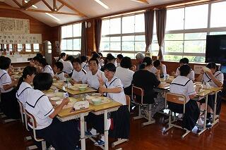 5月10日(木)に都城きりしま支援学校小林校中学部との交流給食がありました。今回は校長先生と3年生生徒3名が一緒に給食を食べました。みんな仲良く楽しい雰囲気の中で食事をすることができました。