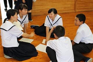 意見を発表している生徒たち