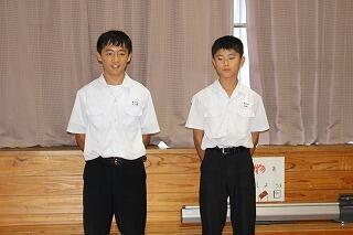 各学年で清掃を頑張っている生徒の表彰