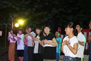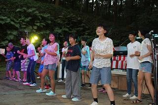 8月11日(土)に、高山地区で盆踊り大会が行われました。本校から19名の生徒が参加して、盆踊り大会で輪太鼓の披露を行いました。地区の方々も盆踊りだけではなく、輪太鼓を一緒に見ることができて盛り上がっていました。