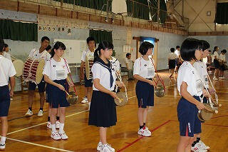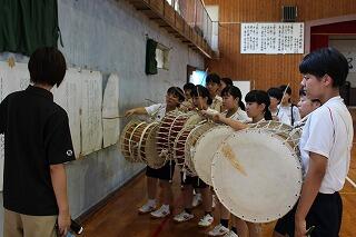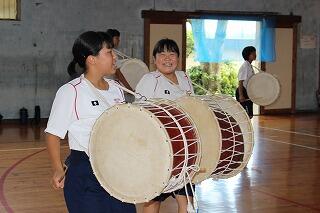 登校日の輪太鼓練習