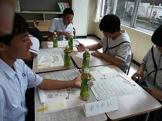 7月19日(木)に、3年生が6月12日(火)に高校訪問を行った小林高校、小林秀峰高校、飯野高校、小林西高校で体験して学習してきたことをまとめた発表会が行われました。発表はプレゼンテーションと壁新聞形式の両方を用いて行いました。聞く生徒の方も発表のしかたや声の大きさなどの項目が書かれた採点用紙を持ち、発表のしかたを採点していました。
