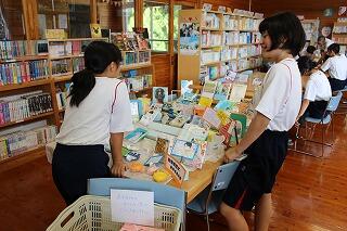 8月28日(火)の昼休みの図書室のようすです。まだまだ30℃を越える真夏日が続いているので、昼休みにエアコンが効いている図書室に来て読書をしている生徒が多いようです。いろいろと新しい本も入っているので、読書に親しんでほしいですね。火曜と木曜日は一般の方にも解放していますので、ぜひお立ち寄りください。
