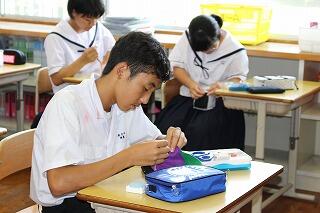 8月29日(水)は1学期前半最後の清掃でした。8月30日(木)から新しい清掃区域に移って清掃することになります。本校の清掃は2分前までに清掃区域に行って準備し、チャイムで黙想、清掃時間いっぱい無言清掃をします。そして清掃時間1分前に放送が入って片付けをし、終わりのチャイムで黙想をして清掃が終わりになります。全校生徒52名ですみずみまで綺麗に清掃できるよう頑張っています。