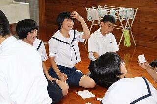 6月22日に本校で四文字熟語のかるた大会が行われました。百人一首や通常のかるたと違い、読み手が四文字熟語の意味を読み、取り手が同じ意味の四文字熟語が書かれたかるたを取るというものでした。グループに分かれてかるた取りをしましたが、みんな取ったかるたが正しいのかどうか分からずに何度も読み手に確かめていました。
