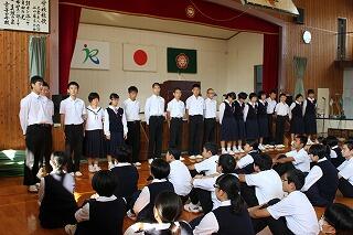 全校生徒元気に校歌を歌っています