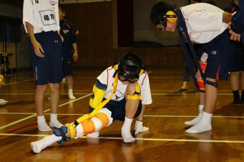 6月18日(火)、5・6校時1年生は、福祉体験実習がありました。今日は、市社会福祉協議会から3名の方に来ていただき、車いす体験、高齢者疑似体験をしました。段差のある所の車いすでの通行が難しく大変危険であること、膝が悪くなった時の大変さ、視力が低下した時の動きが大変であることを身を持って体験することができました。7月には、地区内の4つの福祉施設に分かれて訪問し、交流学習をすることになっています。