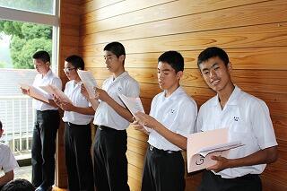 3年生音楽では、西諸音楽大会に向けた練習を始めたところですが、タブレットPCに各パートの演奏を入れて、それを聞きながらパートごとに練習をしています。また、タブレットPCの録音機能を使って、自分たちの歌声を録音して、どのように歌っているのか確認をしています。