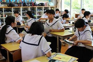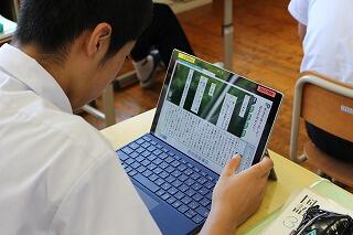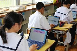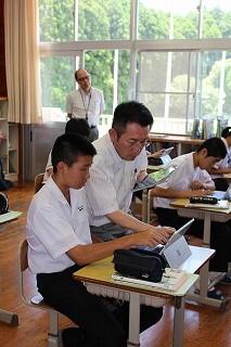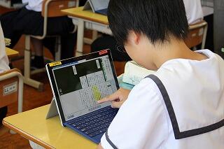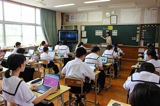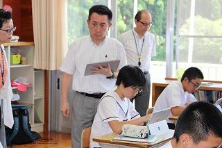 7月11日(水)に、西諸みんなで人権を考える取り組みの道徳授業が行われました。1学年ではタブレットPCを活用して道徳の授業を行いました。生徒一人一人がタブレットPCを使い、題材の登場人物の気持ちを考えて、タブレットPCのワークシートの画面に入力していきました。教師の方では、各生徒の入力した内容を見ながら、各生徒の意見を比較したり、代表的な意見をまとめたりしていました。