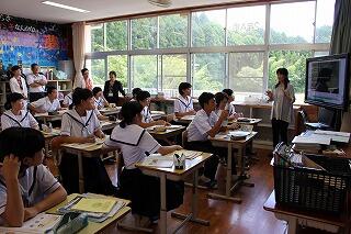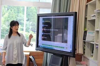 2年は英語の授業で、電子黒板とデジタル教科書を使いました。生徒はデジタル教科書の英語の文章の発音を聞き、教師が生徒にその文章に関する質問をし、英語で答える練習をしました。
