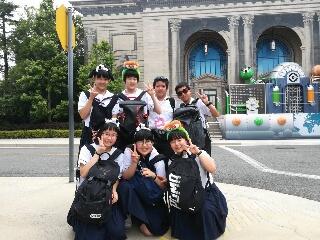 この日は、12時30分からのパレードでしたが、10時には着付けのために集合し出番を待ちました。東方地区の伝統・芸能である輪太鼓踊りを市内外に発信できたことは、本校生徒にとっても良い機会になりました。また、先日お伝えした輪太鼓キャラクターのデビューでもあり、観客の方から記念撮影に引っ張りだこのキャラクターでした。